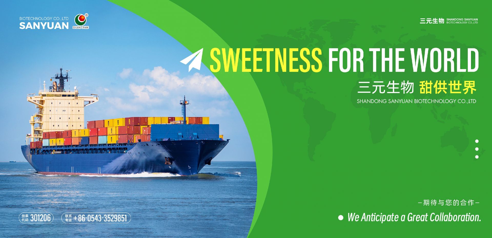 山東三元生物科技股份有限公司成立于2007年,是一家集研發(fā)、生產(chǎn)、銷售為一體的高新技術(shù)生物科技企業(yè),致力于發(fā)酵法生產(chǎn)赤蘚糖醇及新型多功能糖的研究和開(kāi)發(fā)。公司位于山東省濱州工業(yè)園區(qū),占地面積330畝,擁有年產(chǎn)13.5萬(wàn)噸赤蘚糖醇和2萬(wàn)噸阿洛酮糖的生產(chǎn)能力。公司目前與國(guó)內(nèi)知名高校合作建立了健康糖工程技術(shù)研發(fā)中心,并在天津自貿(mào)區(qū)空港經(jīng)濟(jì)區(qū)注冊(cè)成立了“三元生物工程研究(天津)有限公司”,致力于構(gòu)建集研發(fā)、實(shí)驗(yàn)、中試和產(chǎn)業(yè)化于一體的產(chǎn)品創(chuàng)新體系。公司擁有15項(xiàng)國(guó)家知識(shí)產(chǎn)權(quán)專利和3項(xiàng)實(shí)用新型專利,產(chǎn)品質(zhì)量達(dá)到國(guó)際領(lǐng)先水平,已通過(guò)ISO9001(質(zhì)量管理)、ISO14001(環(huán)境管理)、ISO22000(食品安全管理)三體系認(rèn)證、食品安全全球標(biāo)準(zhǔn)認(rèn)證(BRC)、猶太潔食認(rèn)證(KOSHER)、清真潔食認(rèn)證(HALAL)、IP非轉(zhuǎn)基因供應(yīng)鏈標(biāo)準(zhǔn)認(rèn)證、社會(huì)責(zé)任審核(SMETA)等相關(guān)國(guó)內(nèi)外權(quán)威資質(zhì)認(rèn)證。公司擁有自營(yíng)進(jìn)出口權(quán),外銷市場(chǎng)以歐美地區(qū)為主,遍布東亞、東南亞、澳新等40多個(gè)國(guó)家和地區(qū)。產(chǎn)品被科技、環(huán)保、商務(wù)、檢驗(yàn)檢疫-“四部委”認(rèn)定為國(guó)家重點(diǎn)新產(chǎn)品,廣泛應(yīng)用于食品、飲料、保健品、醫(yī)藥、化妝品等各行業(yè)領(lǐng)域中。隨著健康、養(yǎng)生、綠色生活理念的提···